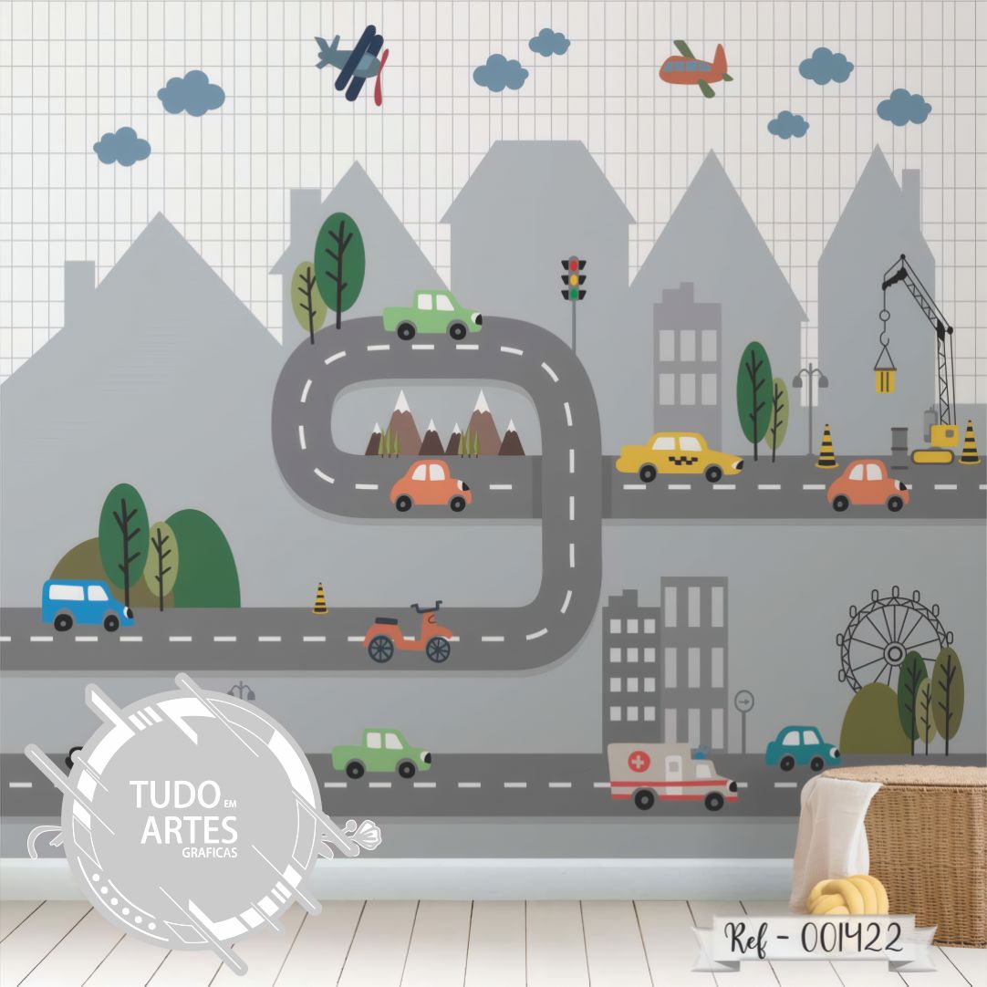 Esse modelo temático urbano é ideal para transformar o ambiente infantil em um espaço lúdico, moderno e estimulante. Com estradas sinuosas, carrinhos coloridos, prédios e elementos como semáforos, roda-gigante, guindaste e aviões, é perfeito para meninos apaixonados por movimento e cidade.