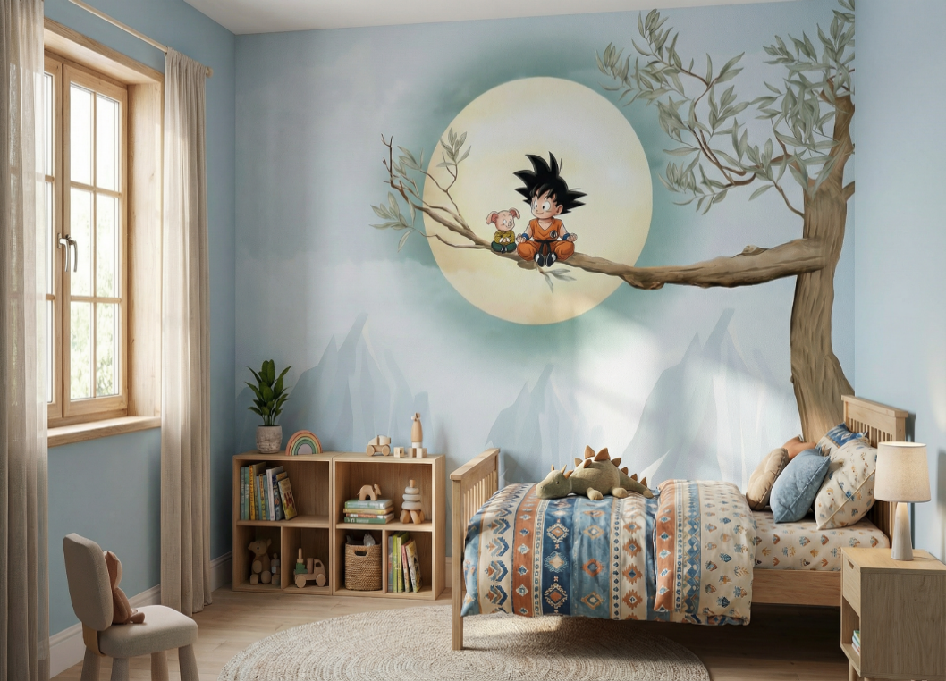 Papel de Parede Infantil Anime Dragonball Tons Aquarela - Decoração Quarto Infantil Bebê Unissex Auto Colante