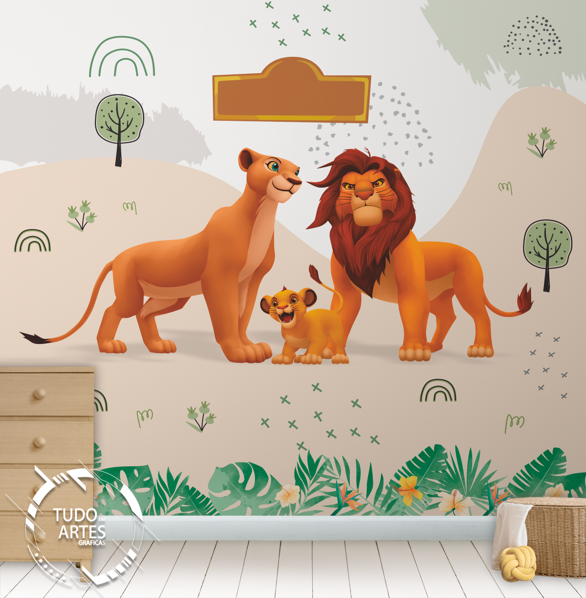 Papel de Parede Infantil Rei Leão Personalizado com Nome- Decoração Quarto Infantil Auto Colante